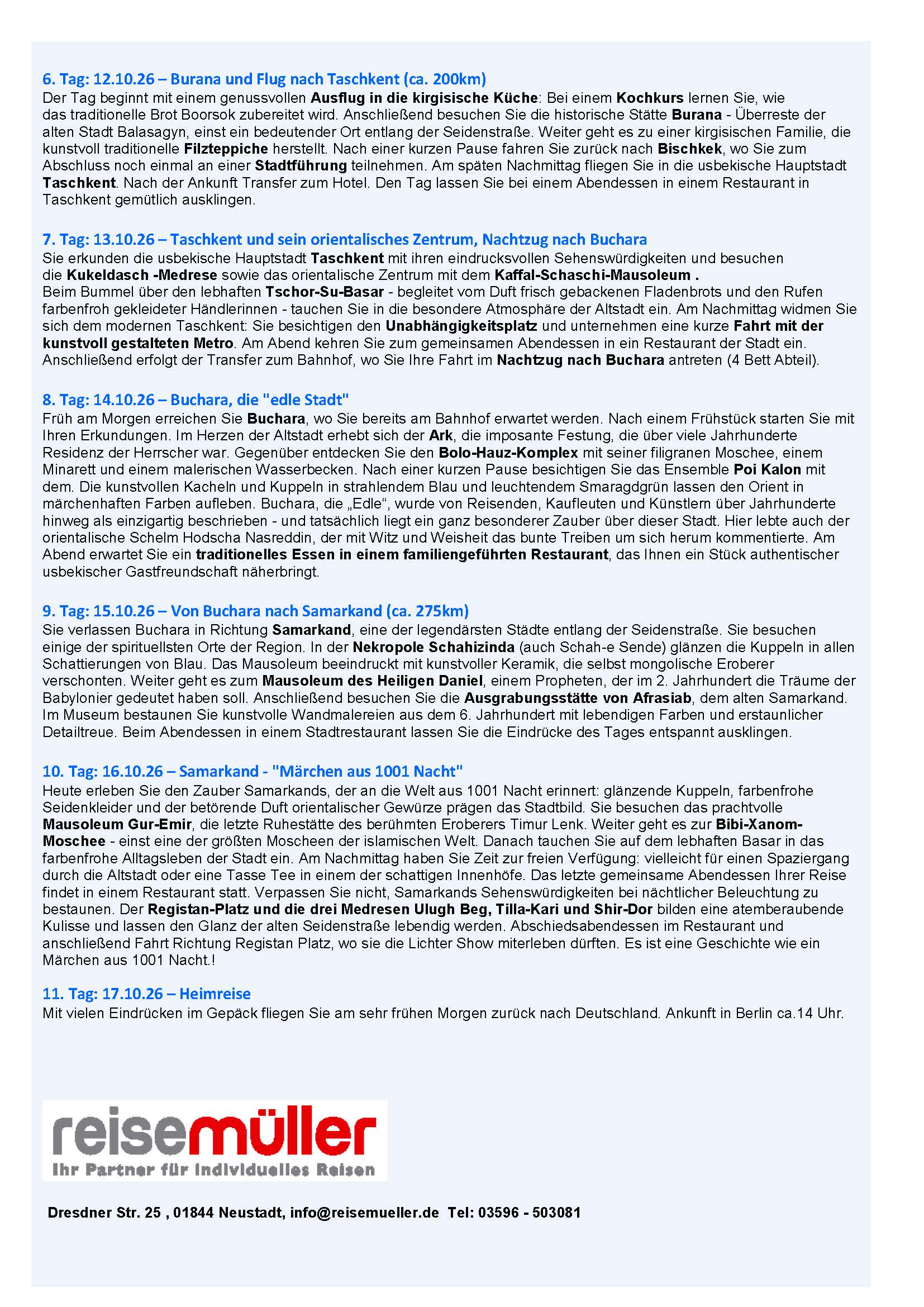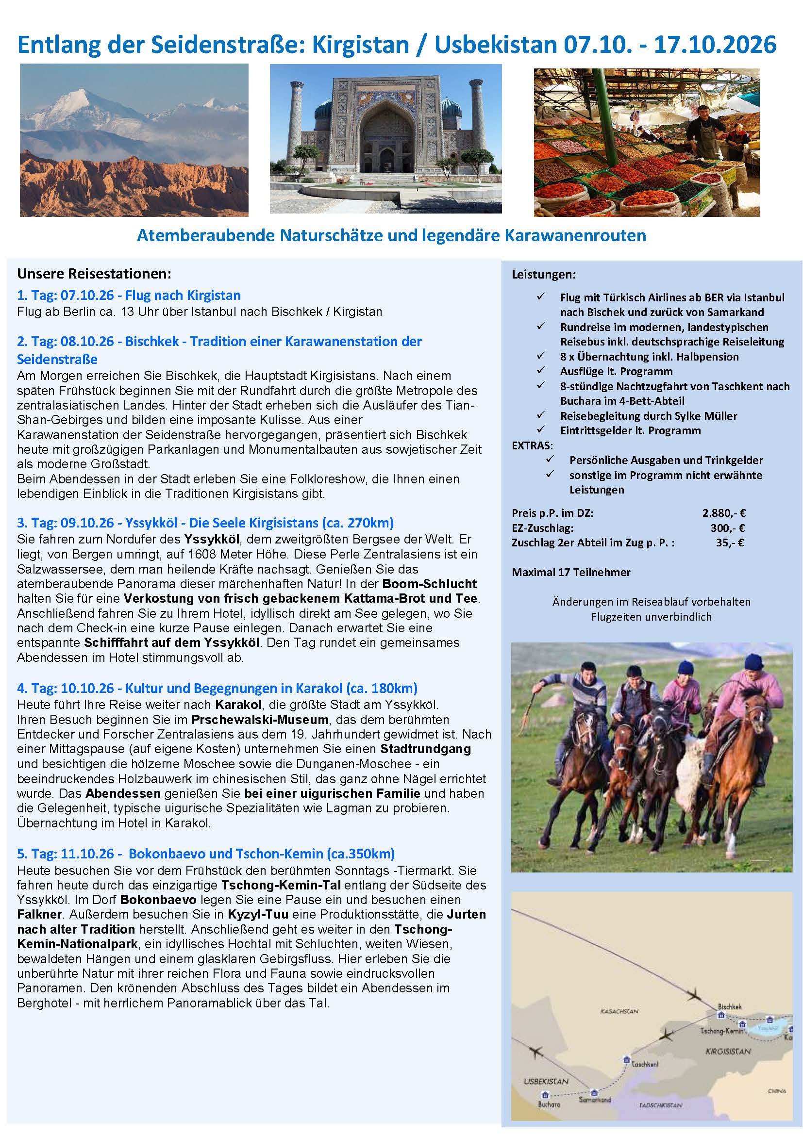 • Entlang der Seidenstraße: Kirgistan / Usbekistan 07.10. – 17.10.2026